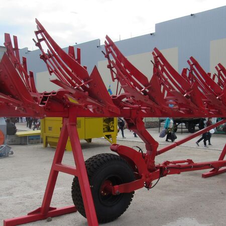 Ширина захвату 4-х ступінчаста, регулюється шляхом ручного повороту елементів гряділя. Це дозволяє легко налаштовувати плуг у відповідності з різними умовами (особливості ґрунту, трактори і т.д.). при регулюванню ширини захоплення передплужники і опорна колесо також змінюють своє положення автоматично. Механічний захист. Під навантаженням зрізний болт ламається, корпус плуга відхиляється від перешкоди і йде вгору.